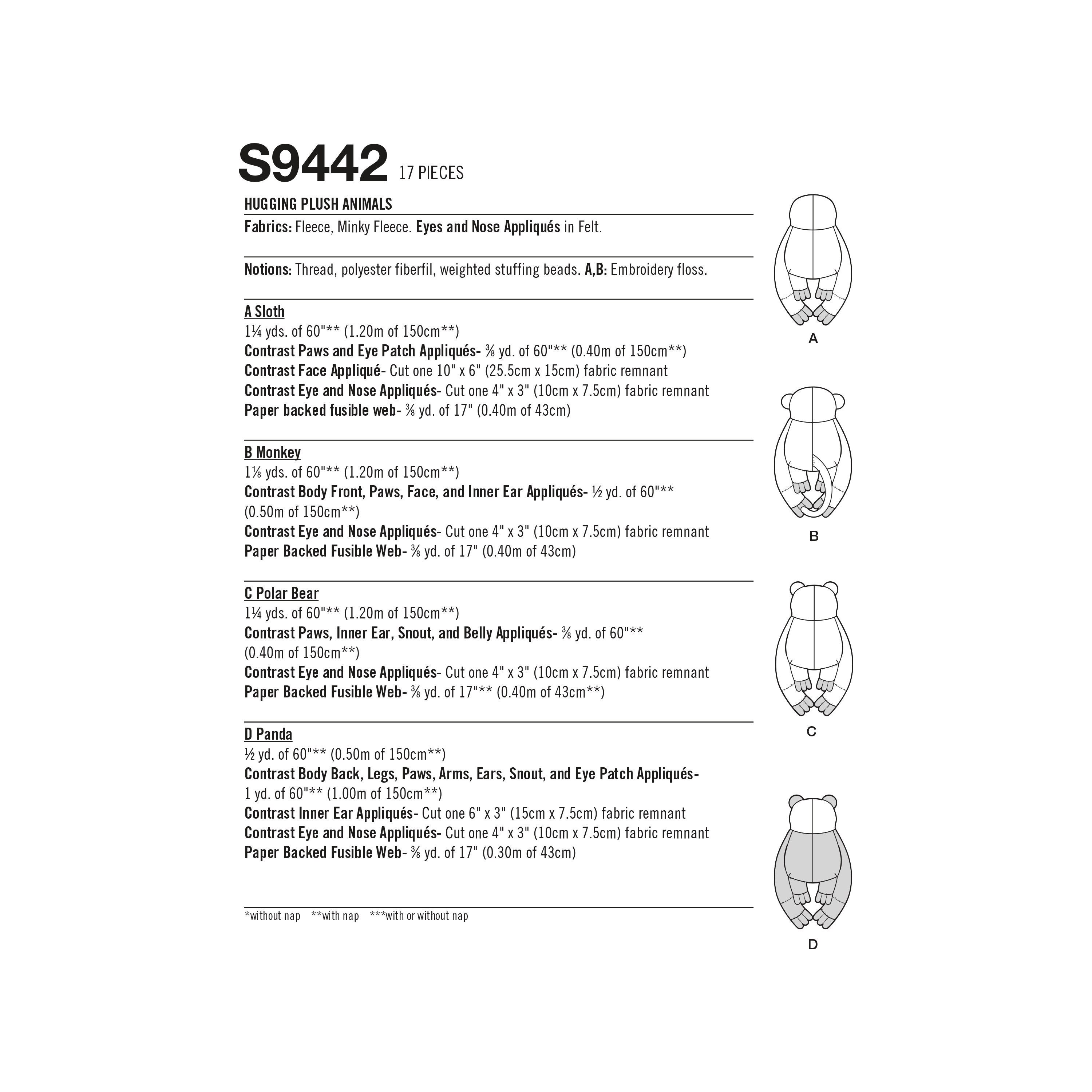 Hugging Plush Animals Simplicity Sewing Pattern S9442 Etsy De