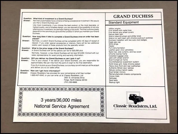 1981 Classic Roadsters Grand Duchess Mg Tf 1 Page Car Sales Brochure Sheet Ebay